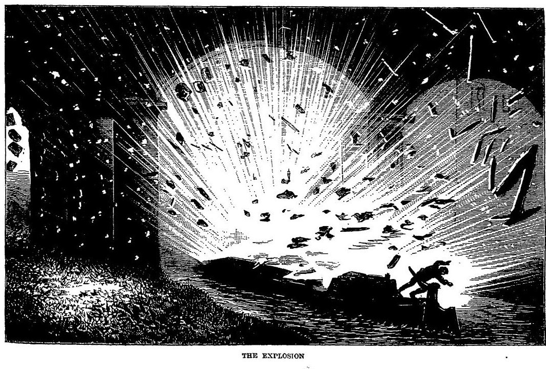A tremendous blast shatters the pre-dawn stillness across North London. According to The Spectator, "All London was at the window in its nightdress on Friday morning." The explosion occurred just after 5.00 a.m. in the Regent's Canal aboard the Tilbury, a barge hauling nuts, coffee and "the perilous combination of two or three barrels of petroleum and about five tons of gunpowder." The explosion could be heard 25 miles away and dead fish rained from the sky in the West End.